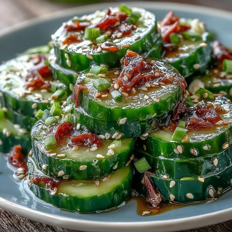 Save to Pinterest My neighbor handed me a container of this salad last summer, still glistening with dressing, and I ate it straight from the bowl standing at my kitchen counter. The snap of the cucumber, the whisper of sesame oil, the little kick of ginger—it felt like a secret someone had been keeping from me. I asked for the recipe the next day, and what arrived was even simpler than I expected, which somehow made it better.