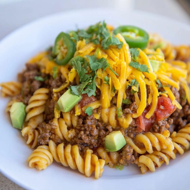 Save to Pinterest One Tuesday night, I stood in front of my pantry with a hungry family and exactly thirty-five minutes before bedtime chaos. Ground beef, pasta, a packet of taco seasoning—nothing fancy, but something clicked. That first skillet version taught me that comfort food doesn't need a long list of steps or fancy equipment; it just needs to come together naturally, the way home cooking should. This became the dish I reach for when time is tight but expectations are high.