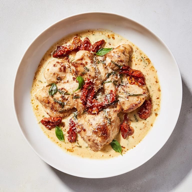Save to Pinterest There's something about the smell of sun-dried tomatoes hitting a hot skillet that makes everything feel a little more special. I discovered this dish on a Tuesday night when I had chicken, half-and-half, and a jar of sun-dried tomatoes taking up real estate in my fridge, and I thought, why not? The result was so silky and elegant that I've made it dozens of times since—sometimes for myself on a quiet evening, sometimes when I want to impress without spending all day cooking.