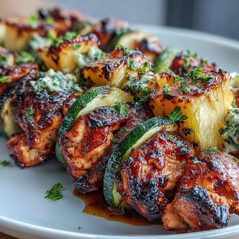 Save to Pinterest Nothing captures the essence of summer quite like the sizzle of a grill and the vibrant aroma of citrus and honey. These Honey-Lime Grilled Chicken Skewers with Zucchini and Pineapple combine juicy, marinated protein with the natural sweetness of charred fruit and fresh vegetables for a meal that is as beautiful as it is delicious.