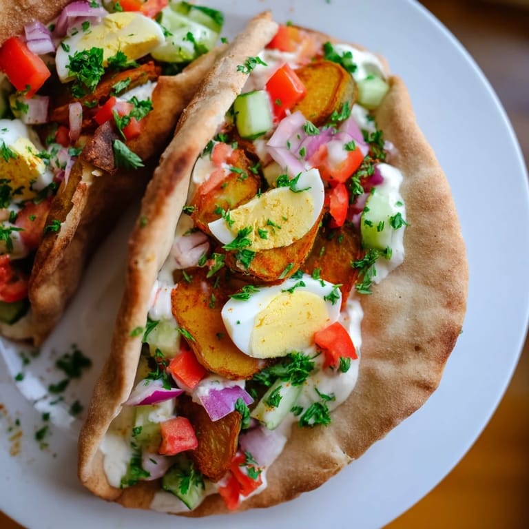 Save to Pinterest The first time I bit into a proper sabich wasn't at a fancy restaurant or in someone's home kitchen—it was from a cramped street stall in Tel Aviv, the vendor working with practiced efficiency while the smell of frying eggplant mixed with tahini and fresh herbs made my stomach rumble. I watched him stuff that pita with golden fried eggplant slices, a perfectly halved hard-boiled egg, vegetables that glistened with olive oil, and a generous pour of creamy tahini that threatened to overflow. That sandwich changed how I thought about vegetarian food; it wasn't a compromise, it was a celebration. I've been chasing that exact feeling in my own kitchen ever since, and after plenty of burnt edges and undercooked middles, I finally cracked the code.
