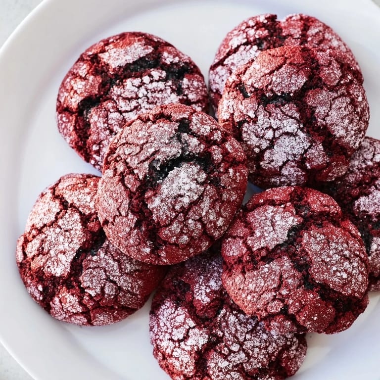 Save to Pinterest A delightful combination of classic red velvet flavor and chewy chocolate crinkle cookies, perfect for holidays or any special treat.