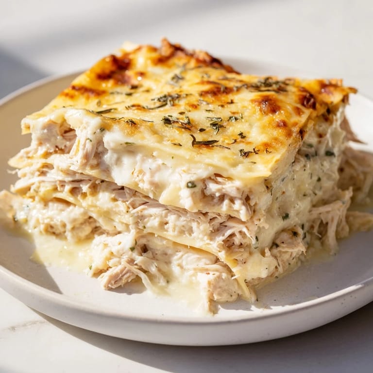 Save to Pinterest A savory twist on the classic Italian favorite, this lasagna layers tender chicken, creamy béchamel, mozzarella, and fresh rosemary for a comforting, fragrant meal.