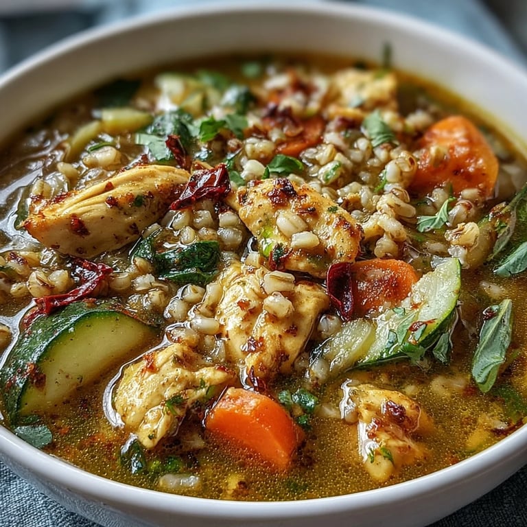 This soup is forgiving and actually welcomes improvisation once you understand the basics. I've made it vegetarian by swapping the chicken for chickpeas and adding an extra half cup of barley, and honestly it's equally satisfying. Fresh spinach or kale stirred in during the last five minutes adds color and nutrients, or you can add diced sweet potato with the zucchini for a different texture profile.