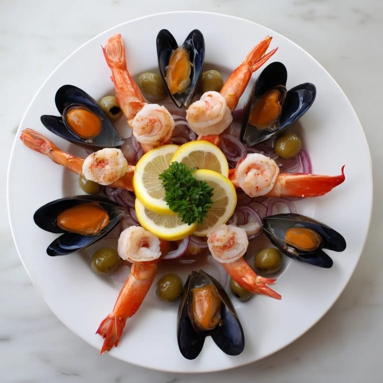 Save to Pinterest The Starfish & Shell Appetizer Board is a stunning seafood-inspired creation that invites guests to savor a medley of ocean flavors presented in an artful arrangement. Perfect for impressing at any gathering, this appetizer brings together cooked shrimp, scallops, crab claws, mussels, and clams arranged in a striking starfish and shell pattern, complemented by zesty sauces, fresh garnishes, and crisp breads. The combination of textures and tastes mirrors the ocean's bounty for a beautiful and delicious start to your event.
