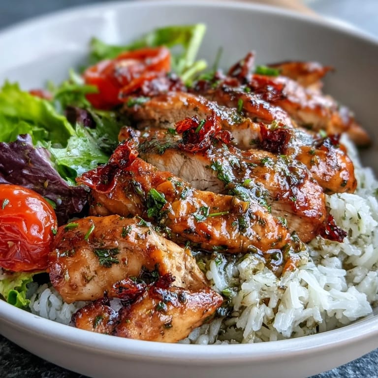 Save to Pinterest The smell of sun-dried tomatoes sizzling in their own oil is what pulled my neighbor through the back door one Thursday evening. I was testing this bowl for the third time that week, trying to get the marinade just right, and she swore she could smell the garlic and basil from her driveway. We ended up eating straight from the skillet, standing at the counter, laughing about how sometimes the best meals are the ones you don't plan to share. That's when I knew this recipe was a keeper.