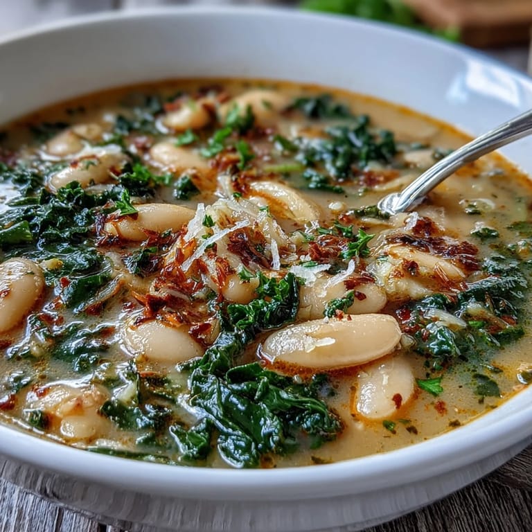 This recipe is a foundation, not a prison. I've made it with spinach when kale looked tired, added a handful of ditalini pasta when I wanted it more substantial, and thrown in white beans I'd cooked myself instead of canned ones. The beauty is that the Tuscan flavor profile is strong enough to hold these changes—it still tastes intentional and delicious no matter what you swap in. Some people add a spoon of pesto at the end, others crumble in a piece of cooked sausage, and none of them are wrong.