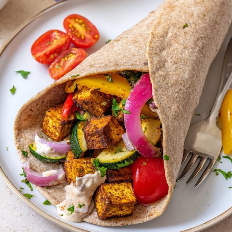 - Warm wraps or pita breads. Fill each with roasted tofu and vegetables, drizzle with tahini-yogurt sauce, and sprinkle with fresh parsley.