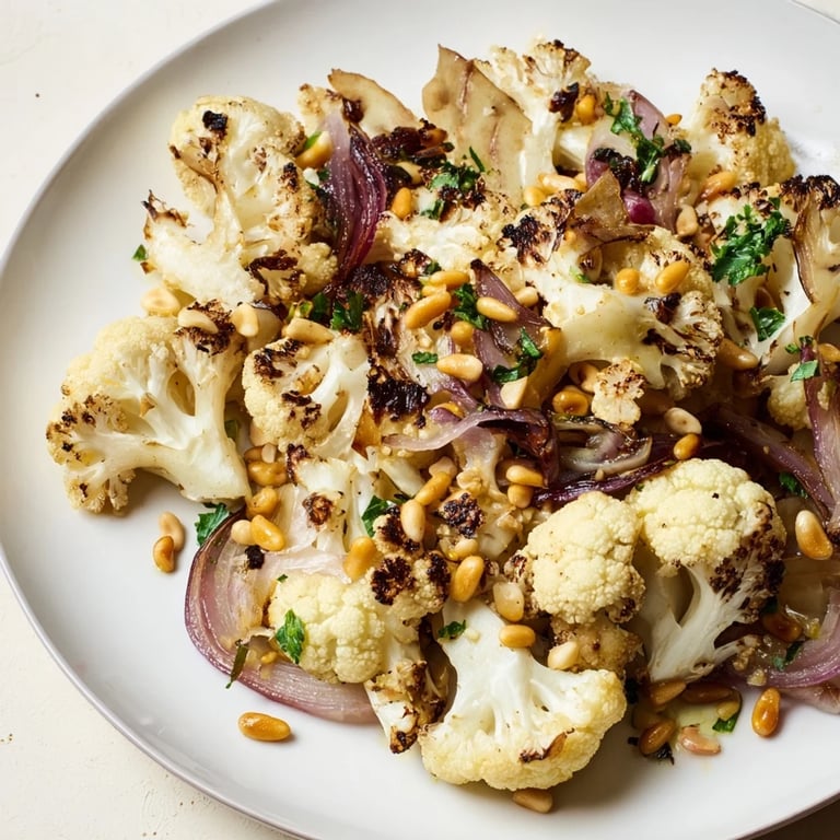 Save to Pinterest A vibrant, comforting salad featuring tender roasted cauliflower tossed with a bright, nutty lemon pine-nut dressing: perfect as a side or light main.