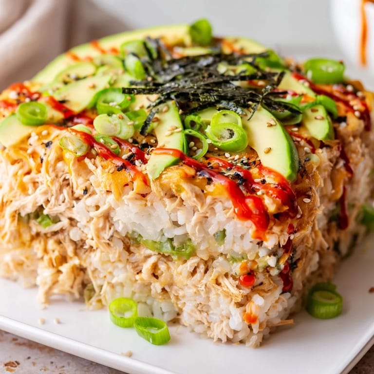 Save to Pinterest The first time I made this, I was standing in my kitchen on a lazy Sunday afternoon, craving sushi but too lazy to roll anything by hand. I remembered a friend mentioning something about baked sushi, and I thought, why not just layer it all like a casserole? Twenty minutes later, the smell of melting mozzarella mixed with sesame and sriracha had me genuinely surprised at how well it worked. Now it's become my go-to when I want sushi vibes without the precision rolling demands.
