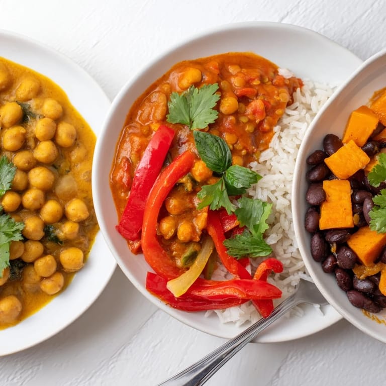 Save to Pinterest A vibrant collection of three easy, one-pot curries inspired by Indian, Thai, and Caribbean cuisines. These flavorful vegetarian curries are perfect for busy weeknights when you want something healthy and globally inspired in minimal time.